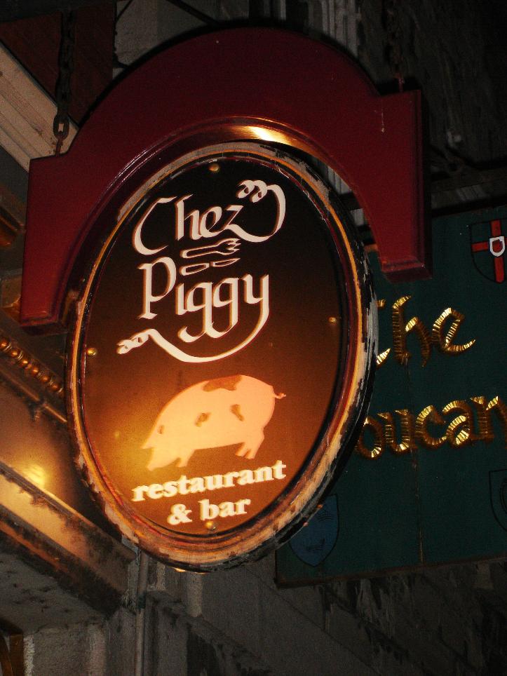 This was Zally’s restaurant! Who is Zally, you ask? Zal Yanovsky was famous for three things: he was lead guitarist for the Lovin’ Spoonful; he was ostracized by the ’60s counterculture for allegedly ratting on his dealer when he was picked up for possession; and, in the ’70s, back home in Canada, he opened Chez Piggy. Zally died in 2002. Chez Piggy is now owned by Zally’s daughter, Zoe. Learn more about Zally by listening to The Mamas and the Papas song, Creeque Alley.