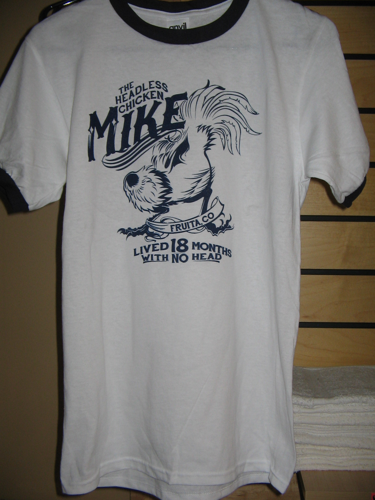 Let’s set the scene: imagine it’s 1948, and you live on a farm where you raise chickens. Your mother-in-law will be here for dinner tonight, and she is fond of eating the chicken neck. So you go out to your coop and grab a fat bird, and when you swing your axe you’re sure to leave lots of neck for your mom. Off comes the head, followed by tonight’s dinner behaving as if nothing significant has just occurred. That’s what actually happened to the Olsen family of Fruita, Colorado. Lloyd Olsen was moved by the chicken’s determination, named him Mike, and continued to raise and feed him (he grew from 2 1/2 pounds to 8 pounds) for the next 18 months!